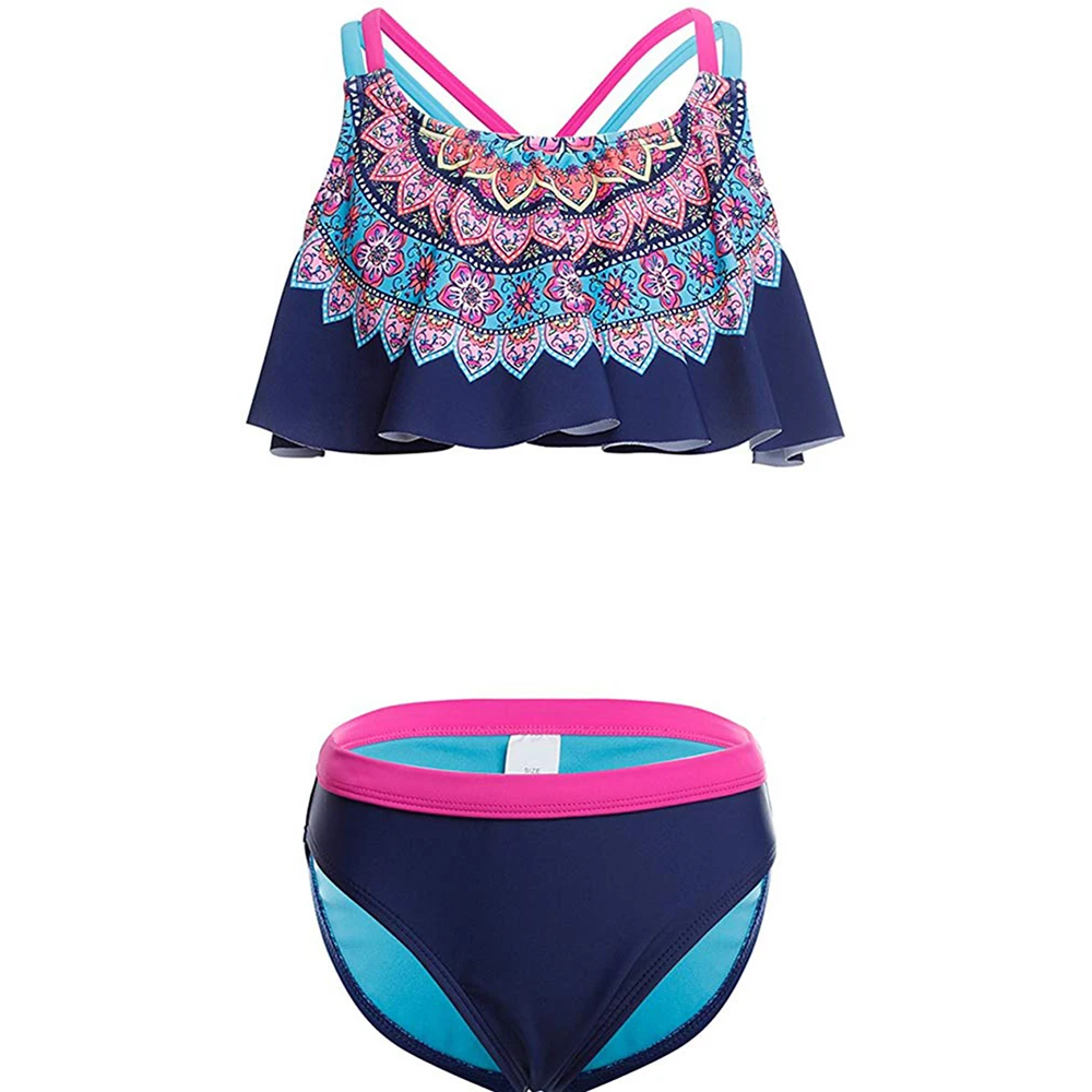 MAICO Girls Two Pieces Suits For Swimming Children Polyester Swimwear Kids Floral Bathing Suit Swim