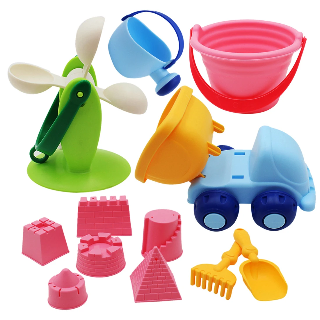 12Pcs Soft Rubber Baby Beach Bucket Toy Set Beach Toy Bath Play Set Sand Molds Tool Water Game Sand