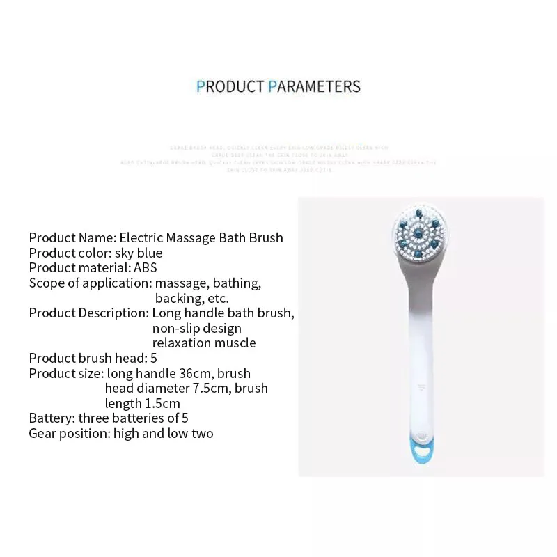 New Multi-function Long Handle Back Bath Waterproof Electric Massage Bath Brush Health Care Bathtub