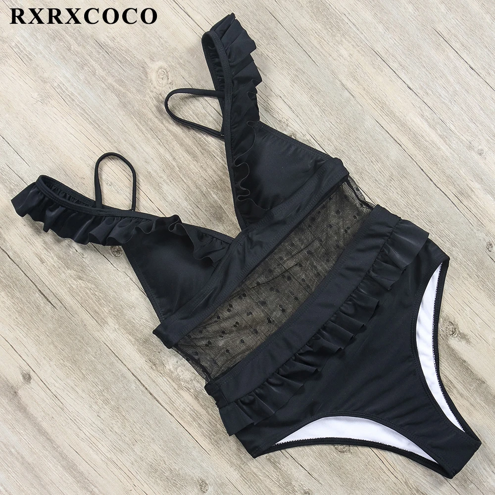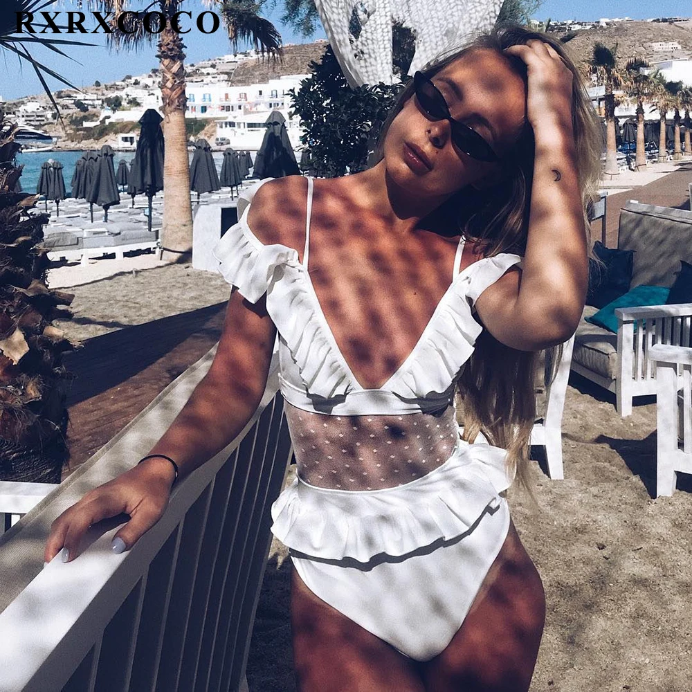 TOP RXRXCOCO 2019 New Summer Halter Sexy Cut Out One Piece Swimsuit Women Beach Wear Bathing Suit Swimw